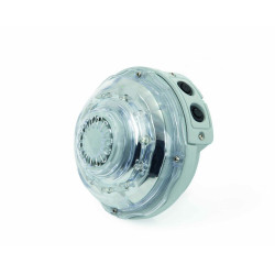 Spot lumineux pour Pure Spa Intex équipés de Jets. Eclairez votre spa gonflable avec cette lampe à LED multicolore pour prolonger votre baignade même la nuit. Créez une ambiance unique pour vous détendre. Cette spot s'illumine de 5 couleurs différentes : blanc, vert, turquoise, bleu et violet et vous pouvez choisir deux modes d’éclairage : - 1 couleur unique fixe au choix : blanc, vert, turquoise, bleu et violet - Ou alors un changement aléatoire : vert, turquoise, bleu et violet Cette lumière se connecte sur une buse jets de votre spa et fonctionne ainsi sur le principe de la dynamo sans piles ! Il ne fonctionne donc que sur les spas à Jet ou les spas Jets+Bulles. Cet accessoires est incompatible avec les spas à Bulles uniquement (Beige ou Bleu Nuit)