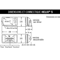 Le GPS traceur Humminbird Helix 5 G2 est certifié IPx7 et possède un écran couleur panoramique 5" HD (800 x 480 pixels) avec rétroéclairage à leds, lisible en plein soleil antibuée et anti reflet.