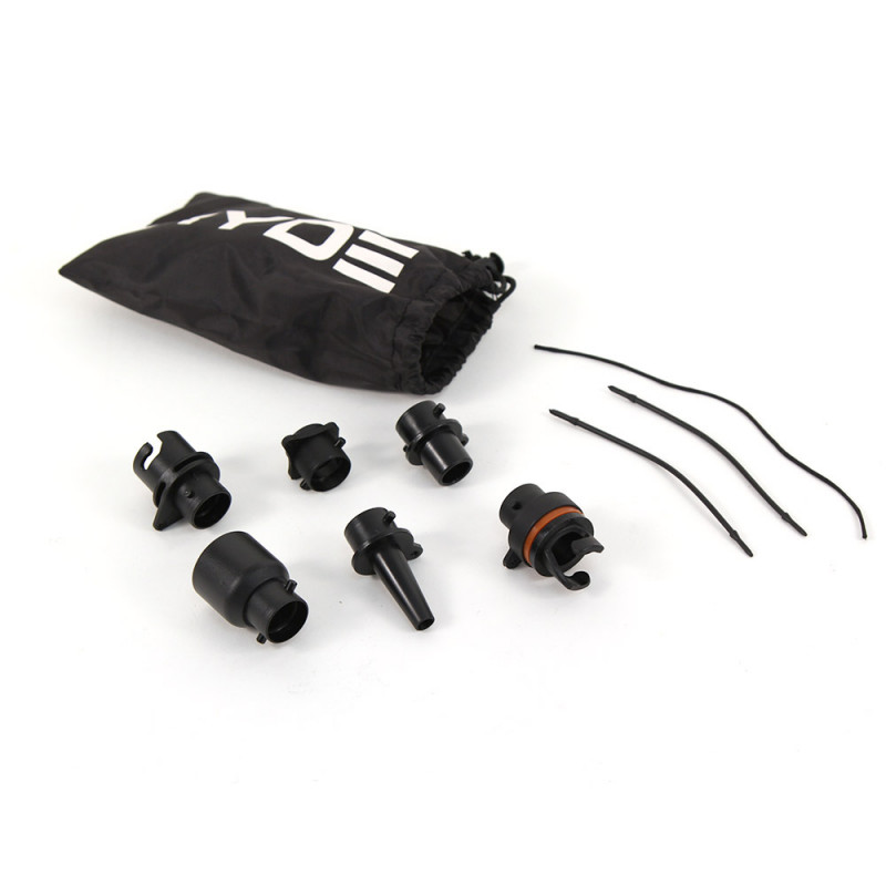 Contient tous les embouts nécessaires pour toutes les ailes de kitesurf du marché (Duotone, North, Cabrinha, Liquid Force, Naish, F-One, etc ..) et un embout haute pression.