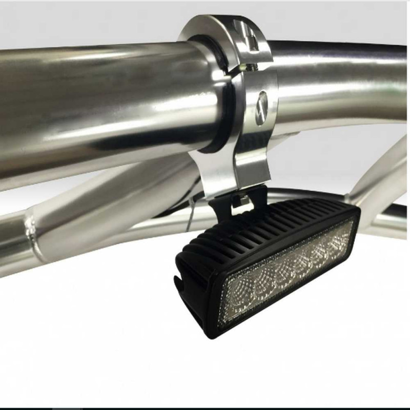 Boitier en aluminium anodisé poli, support adaptable sur tout tube de Ø 38 à 64 mm.