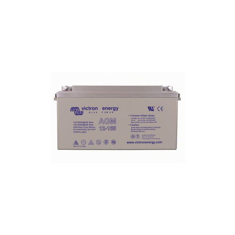 La technologie de batterie AGM (Absorbent Glass Mat) consiste en l'absorbtion par capillarité de l'électrolyte dans une natte en fibre de verre, placée entre les plaques de plomb. Les batteries AGM ont en général une durée de vie plus longue et un plus grand nombre de cycles que les batteries à électrolyte liquide et les batteries Dual. La batterie AGM de Victron est spécialement adapatée pour la décharge lente, avec un courant de décharge assez élevé. Elle fonctionnera également très bien pour une décharge lente avec un courant plus faible, même si elle sera dans ce cas moins performante qu'une batterie Gel.
