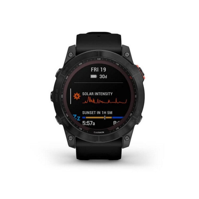 La montre Garmin Fenix 7X Solar est un modèle tout-terrain qui comprend des fonctions d'entraînement avancées et des capteurs de suivi de votre santé et de votre bien-être. Il dispose du verre Power Glass utilisant la captation solaire pour une autonomie de batterie optimale. Ce modèle permet de consulter vos messages, écouter votre musique, vous orienter partout dans le monde, et il intègre également une fonction lampe torche pour voir et être vu lors de toutes vos activités !