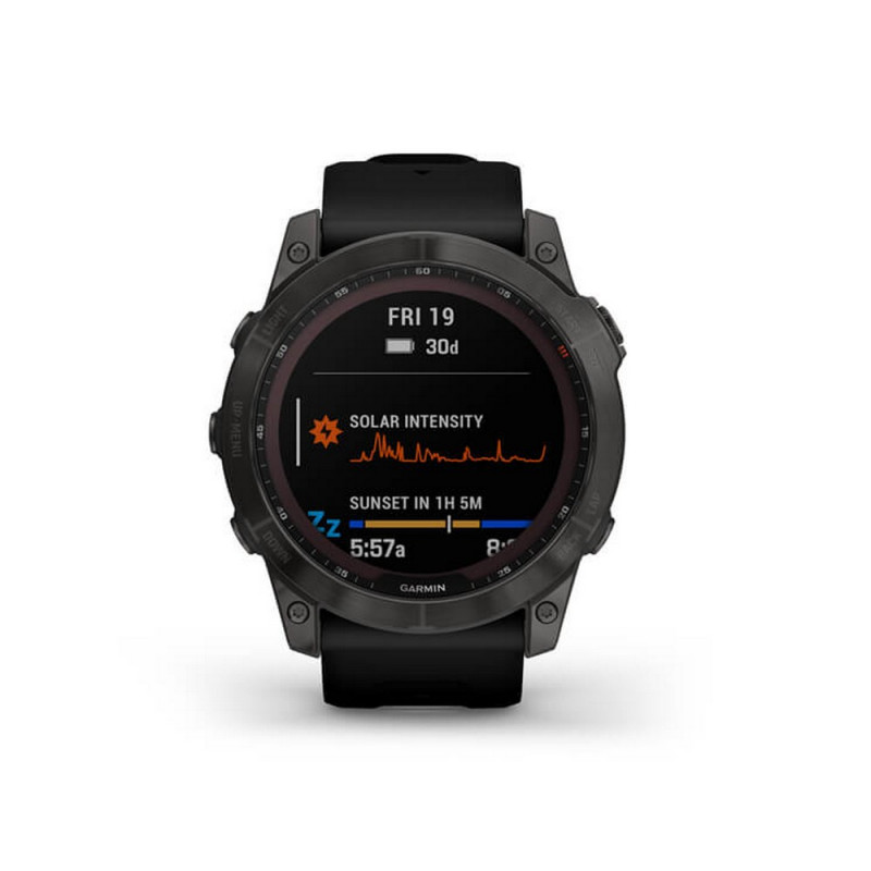 La montre Garmin Fenix 7X Sapphire est équipée du verre Power Sapphire, un verre résistant aux rayures et utilisant la captation solaire pour une autonomie de batterie toujours plus performante. Avec des fonctions d'entraînement avancées, des capteurs de suivi de votre santé et de votre bien-être, découvrez une multitude de programmes toujours plus travaillés. Cette montre permet de consulter vos messages, écouter votre musique, vous orienter partout dans le monde, et elle intègre également une fonction lampe torche pour voir et être vu lors de toutes vos activités !