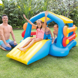 Avec ses 4 boudins gonflables amovibles et son toboggan, vos enfants auront de quoi s'amuser. De plus son toit leur permettra d'être à l'abris du soleil et donc de jouer sans risque d'insolation.