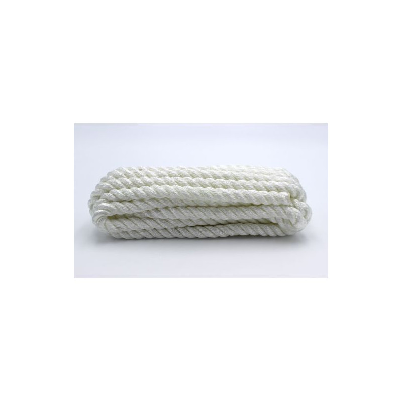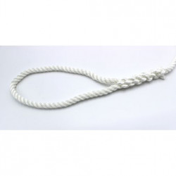 Cordage 3 torons en polyester haute-ténacité pour amarrer son bateau au port. Epissure déja réalisée sur une des extrémitées. Cette épissure facilitera l'ammarage au ponton sur les bites d'ammarage et évitera que le cordage ne se délie.