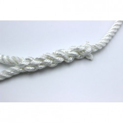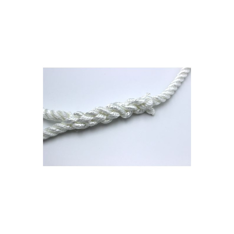 Cordage 3 torons en polyester haute-ténacité pour amarrer son bateau au port. Epissure déja réalisée sur une des extrémitées. Cette épissure facilitera l'ammarage au ponton sur les bites d'ammarage et évitera que le cordage ne se délie.