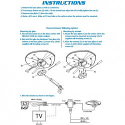 Livrée avec un câble TV de 1.5m, un câble coaxial blanc de 5m et un amplificateur de tension 12V.