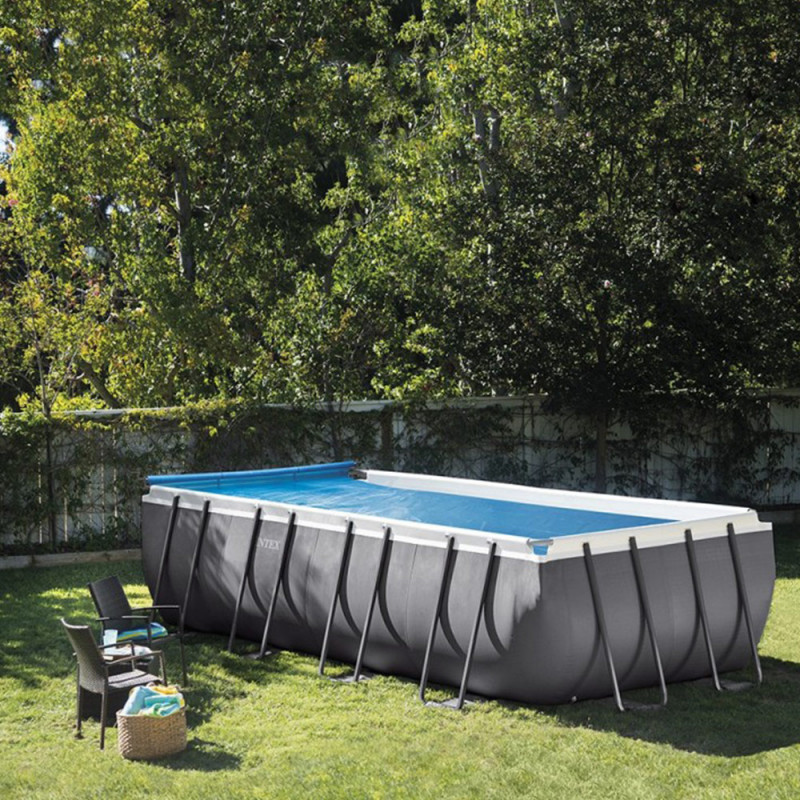 Enrouleur à bâche à bulles pour piscines Intex rectangulaires d'une largeur de 2,74 à 4,88 m.