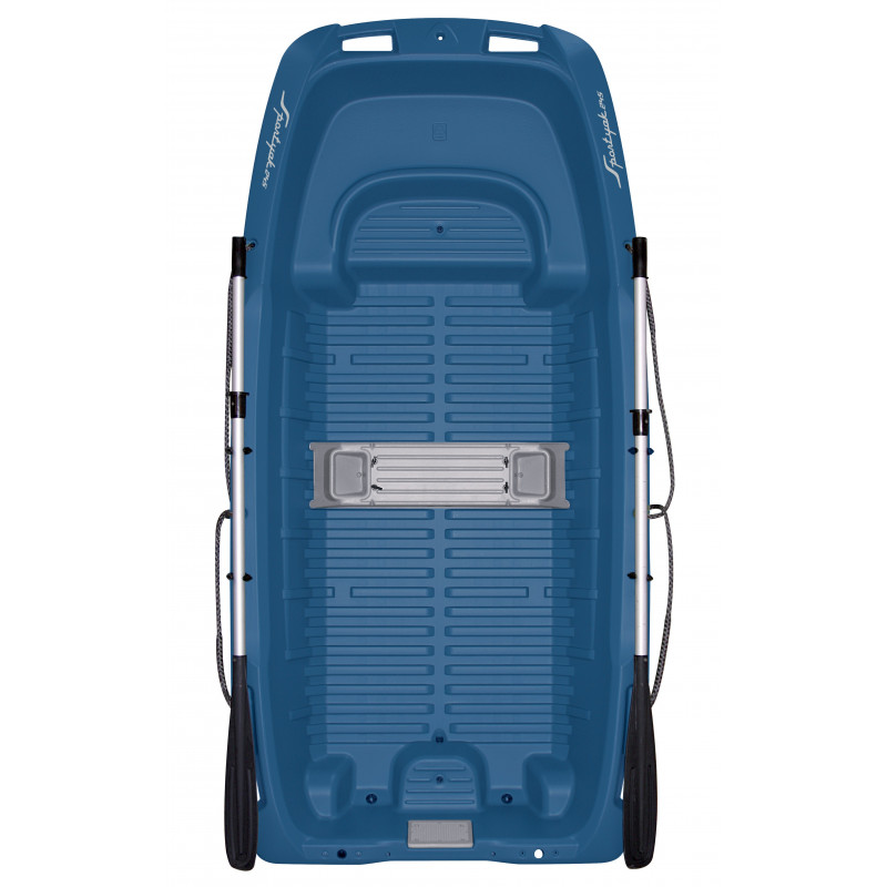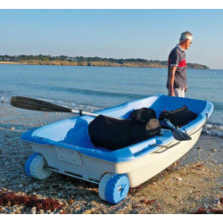 Elle permet de charger un seul côté sans risque de chavirage. Cette forme et les plats latéraux donnent une très bonne glisse, un plan antidérive efficace et une glisse supérieure. Les roues sont intégrées dans la forme de la coque.