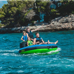 Moments de fun entre amis ou en famille avec la bouée tractée Swath 4 places de chez Jobe