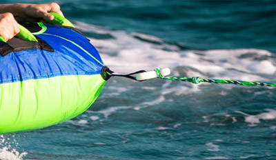 Vous pouvez également y ajouter un largueur Quick release (en option) qui viendra se fixer entre la bouée et la corde, permettant de se détacher rapidement si nécessaire.
