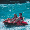Cette bouée est très résistante car elle est en PVC d'épaisseur 0.6mm. De plus elle est recouverte d'une housse en nylon de 840 deniers et double couture pour être plus solide à la traction. Elle supporte deux personnes.