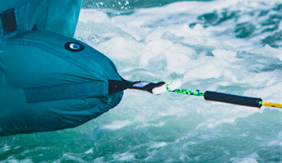 Vous pouvez également y ajouter un largueur Quick release (en option) qui viendra se fixer entre la bouée et la corde, permettant de se détacher rapidement si nécessaire.