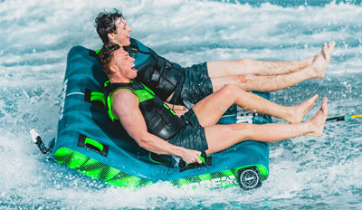 Avec cette bouée choisissez le sens de traction, pour être assis ou à genoux ! Une bouée utilise comme fauteuil ou comme bouée de traction.