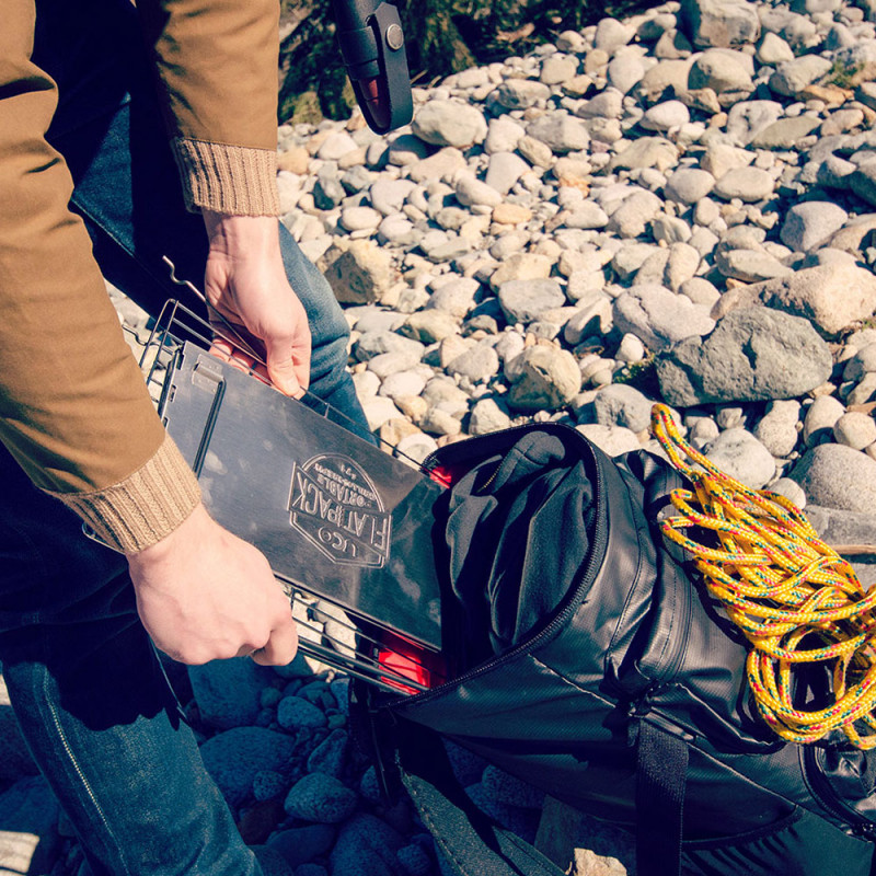- Le barbecue est pliable donc peut facilement être rangé dans un sac à dos