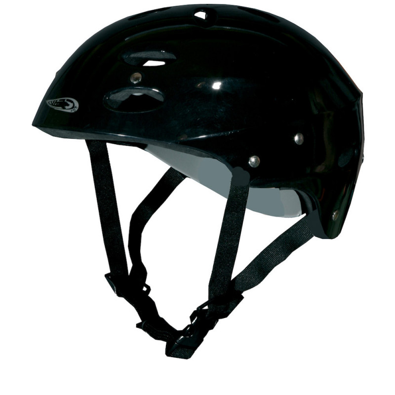 Casque spécifique pour le kayak et la descente en eau vive en plastique ABS avec des trous d’aérations.
