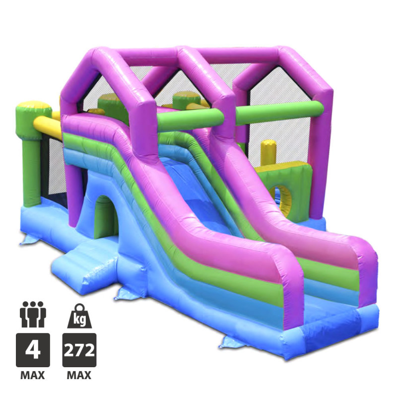 Le château gonflable Happy Hop 3 en 1 est un monde à lui tout seul avec d'innombrables activités proposées pour prendre un maximum de plaisir entre enfants et même pour les parents ! Il est facile à gonfler grâce à son souffleur électrique et à installer avec ses piquets de fixation au sol.