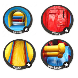 Le château gonflable Happy Hop Super Fun Zone est un monde à lui tout seul avec d'innombrables activités proposées pour prendre un maximum de plaisir entre enfants et même pour les parents ! Il est facile à gonfler grâce à son souffleur électrique et à installer avec ses piquets de fixation au sol.