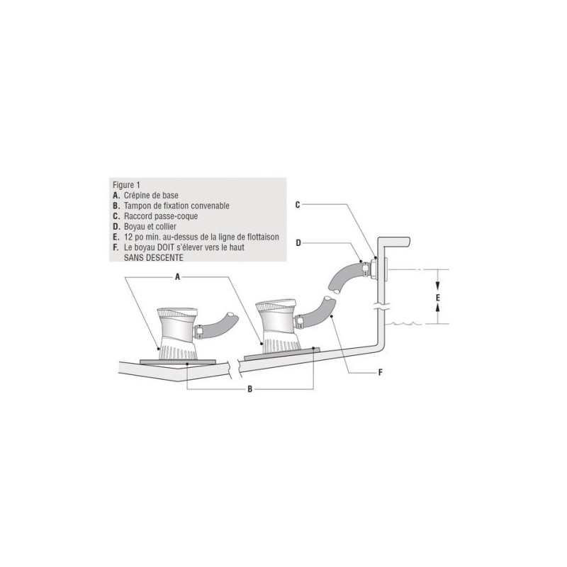 La pompe de cale livrée prête à l'installation avec le support pré-percé.