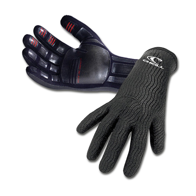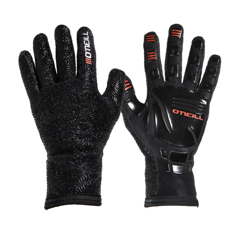 - Grâce à la technologie FlexLoc Stitch, la technique de couture de O'Neill , les coutures empêchent l'eau de s'infiltrer dans les gants.