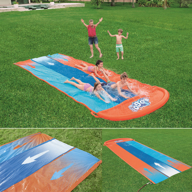 Le tapis de glisse gonflable 3 pistes de chez Bestway est parfait pour que les enfants glissent sur le ventre. Il peut accueillir 3 personnes simultanément.