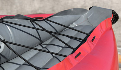 Kayak ultra compact (2 fois moins de volume que les modèles avec une housse), très facile à transporter. Gonflage et dégonflage très rapide (moins de 5 minutes).
