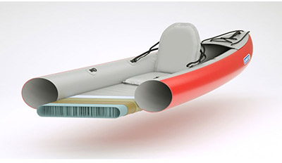 Il dispose une quille gonflable intégrée dans le panneau Dropstitch . Une autre innovation : les cale-pieds réglables depuis la position assise dans le bateau sont également produits en Dropstitch