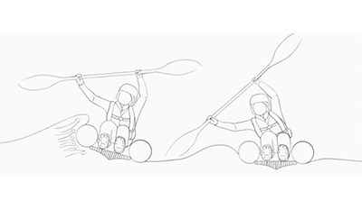Le fond Dropstitch étroit + les boudins surélevés permettent de gîter le bateau contre les vagues en mer. Les arrivées sur les plages se feront en douceur sur la gîte, même dans des rouleaux de faible hauteur.