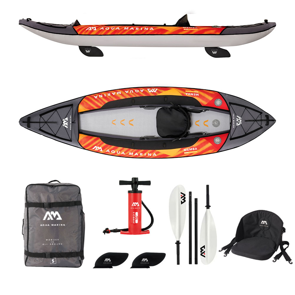 Le kayak gonflable Aquamarina Memba 1 place 2022 est un kayak robuste polyvalent qui vous permettra de faire de belles balades. Un plancher rigide, un renfort en polyester pour plus de durabilité. Le kayak Aqua Marina Memba est idéal pour de longues balades et randonnées avec sa ligne étendue pour maintenir le cap.