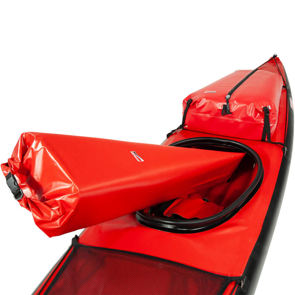 Des espaces de rangement sous le pont avant et le pont arrière sont disponibles avec la possibilité de sécuriser des sacs étanches parfaitement ajustés. Si, les rangements ne sont pas ne sont pas suffisants, il est possible d'ajouter des sacs étanches au-dessus du filet présent sur le kayak afin de conserver les bouteilles d'eau à portée de main.