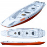 Il dispose d'une carène travaillée et d'une large plate forme à l'arrière pour un maximum de stabilité.