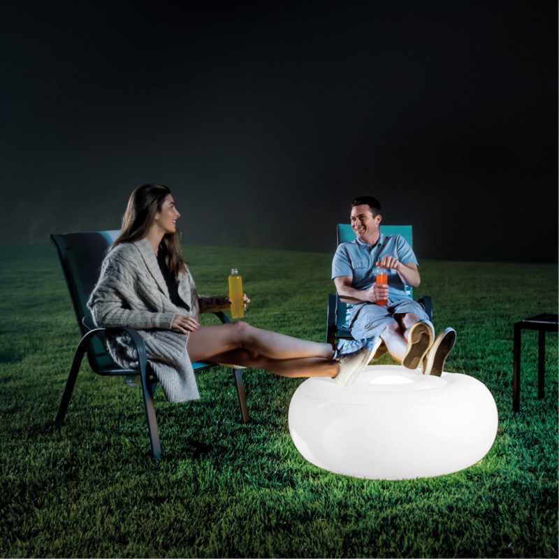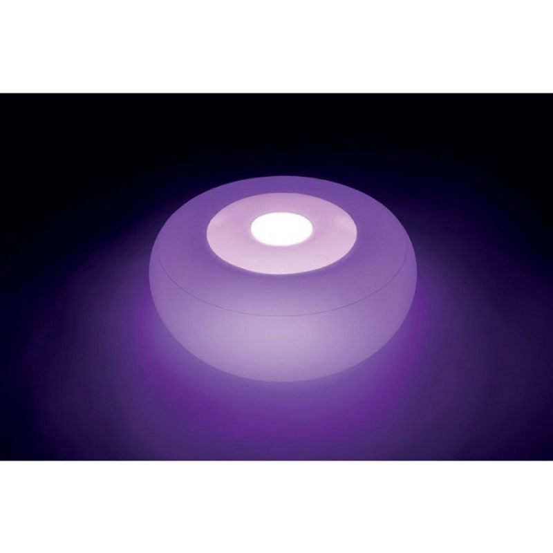 Intérieur ou extérieur, ce pouf lumineux Gonflable INTEX multicolore créé une ambiance détendue pour vos soirées. En décoration, siège ou repose pied, ce pouf tendance est confortable, et résistant à la pluie. Vous pouvez choisir le mode de couleur que vous souhaitez, plusieurs couleurs au choix (blanc, vert, bleu, violet, rose, rouge). Pas de panique, la batterie vous offre une autonomie de 5 heures et elle est rechargeable par port USB. Une fuite d'air ? un patch de réparation est fourni.