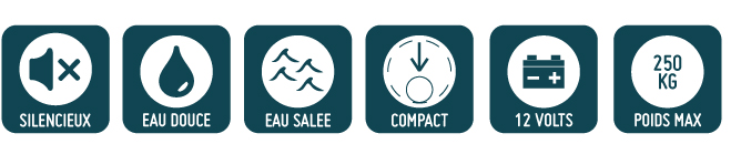 Notez que le temps d’utilisation dépend de nombreux facteurs (Poids à bord, vent, vagues, courant, bateau utilisée…)