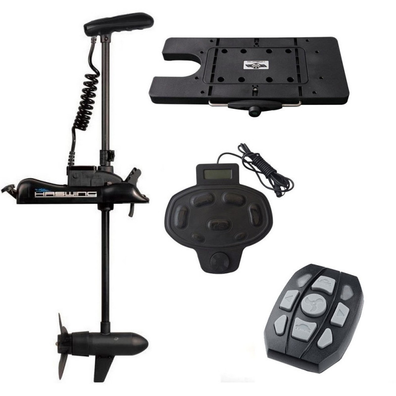 Pack Moteur hors-bord électrique 12 V, 55 lbs arbre long + Plaque Quick Release + Pédale de commande à distance + télécommande