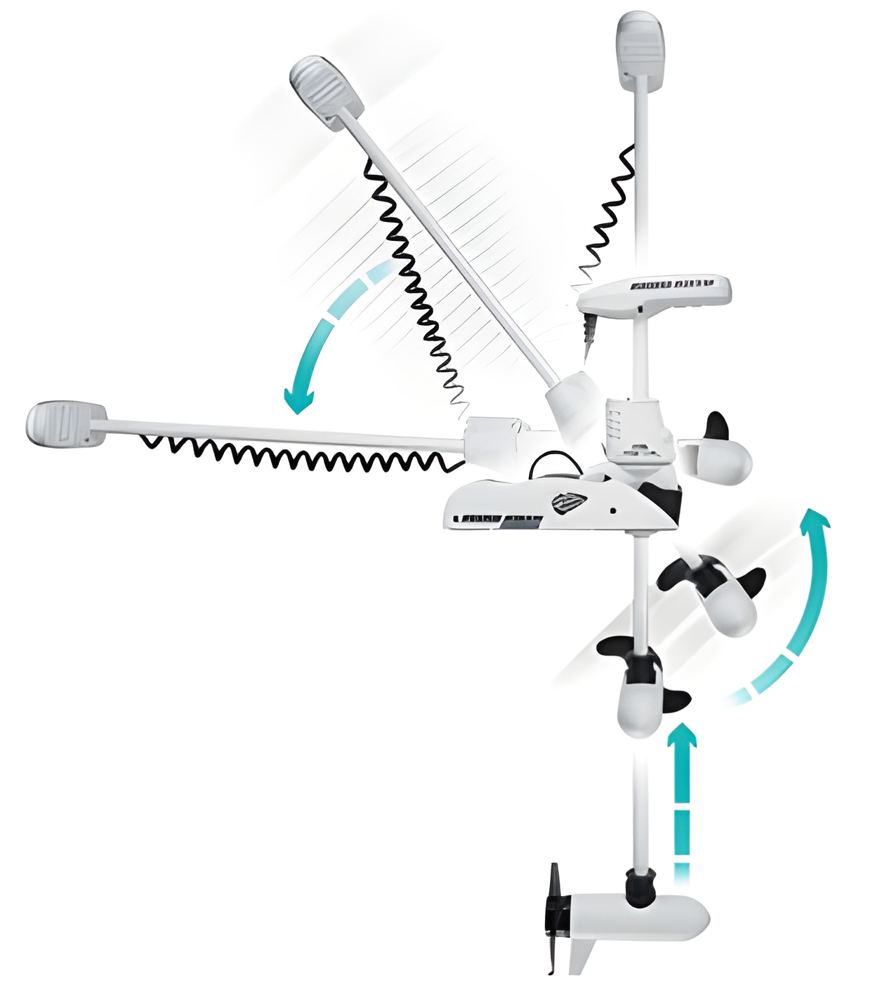 Grâce au système de relevage/déploiement, il est possible de remonter et descendre le moteur très facilement. D'une simple pression sur la poignée, faites glisser le Terrova BT dans l'eau. Le relevage se fait tout aussi facilement et le coup circuit stoppe automatiquement votre moteur