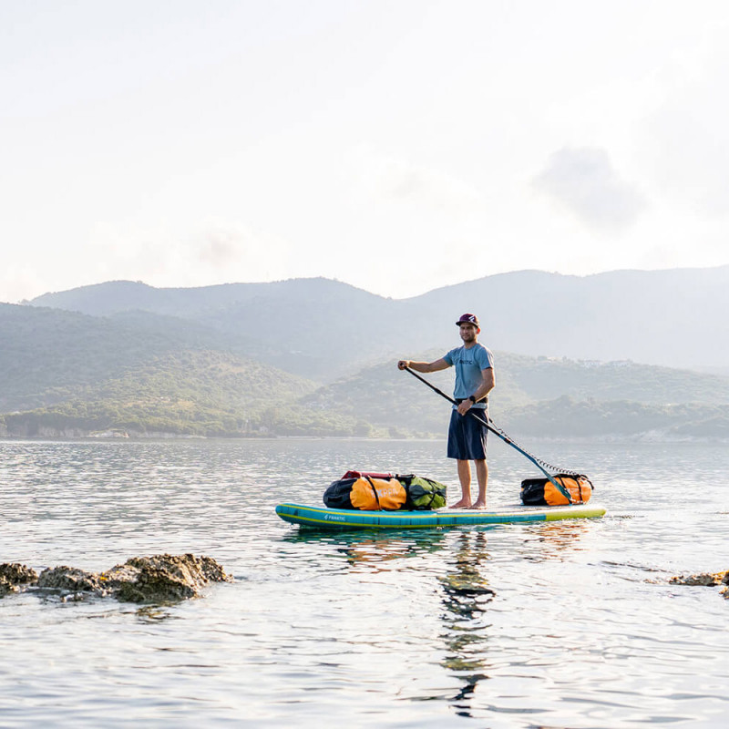 Ses dimensions et son arrière large lui permettent de transporter des sacs étanches afin de partir en exploration.