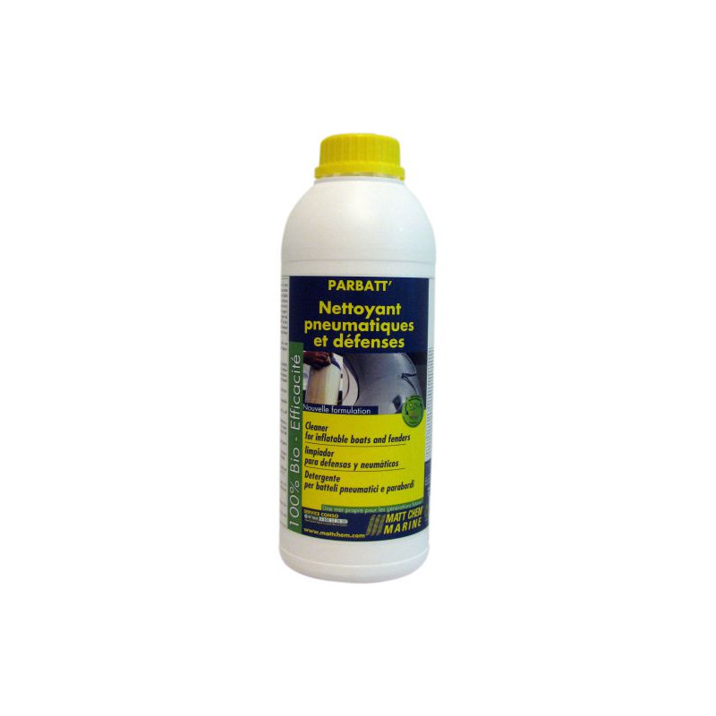 PARBATT’ nettoie parfaitement et sans difficulté les défenses et les pneumatiques encrassés par des souillures de carbone, des dépôts de fumée, des résidus gommés, des salissures grasses... PARBATT’ redonne à la surface traitée sa propreté initiale sans altération du support. PARBATT’ n’attaque pas les alliages légers tels chrome, aluminium anodisé. PARBATT’ est élaboré à partir de tensio-actifs végétaux facilement renouvelables. PARBATT’ est un nettoyant fortement concentré et économique.