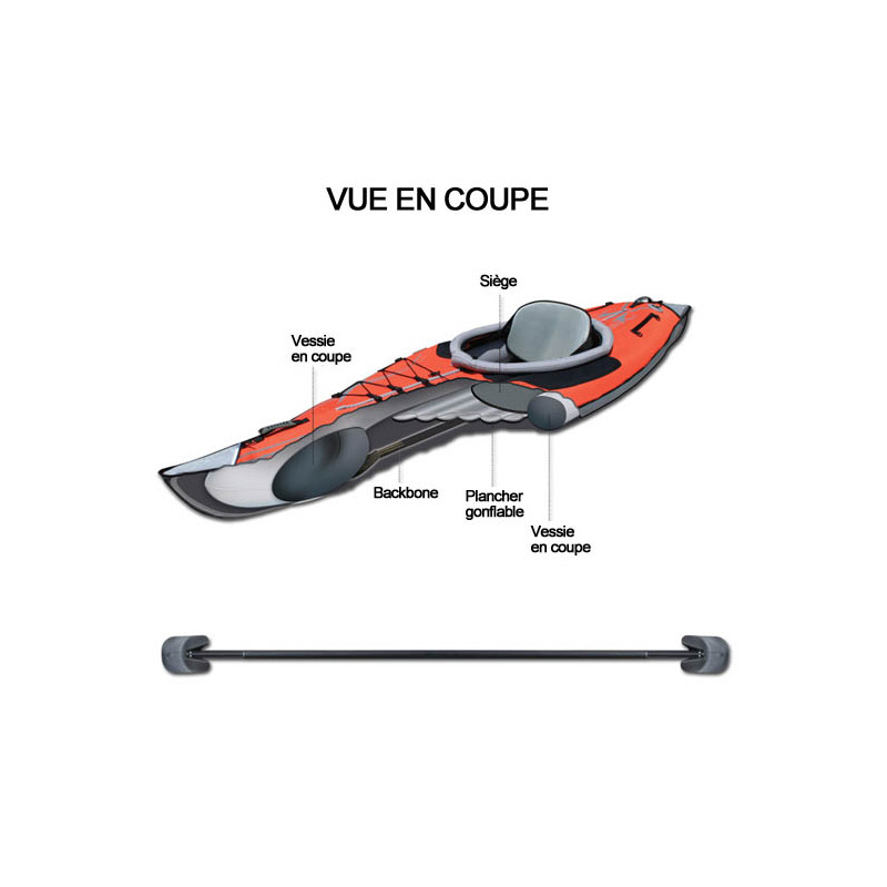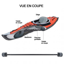 Le backbone sert à rigidifier le fond du kayak afin de le rendre plus performant. Grâce à cette barre, le kayak ne dérivera pas à cause du vent, il sera plus rapide et plus directionnel.