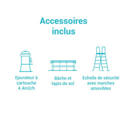 Livrée complète avec échelle, tapis de sol, bâche, épurateur 4,4 m³/h et ses tuyaux