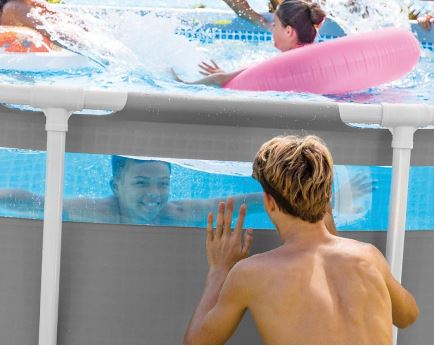 La piscine nouvelle PRISM FRAME CLEAR WINDOW de chez INTEX fait son entrée sur le marché avec une fenêtre panoramique transparente. Facile d'installation cette piscine sera parfaite pour rafraichir toute la famille pendant les chaudes journées d'été.