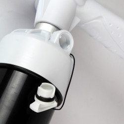 Cette pompe offre le choix de basculer facilement entre double et simple action (la pompe ne fonctionne plus qu’en descendant), ce qui demande moins d'efforts pour les gonflages haute pression.
