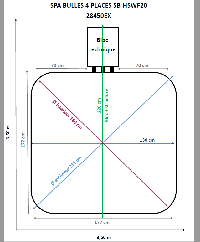 Dimension du bloc technique : 45 x 38 x 43 cm