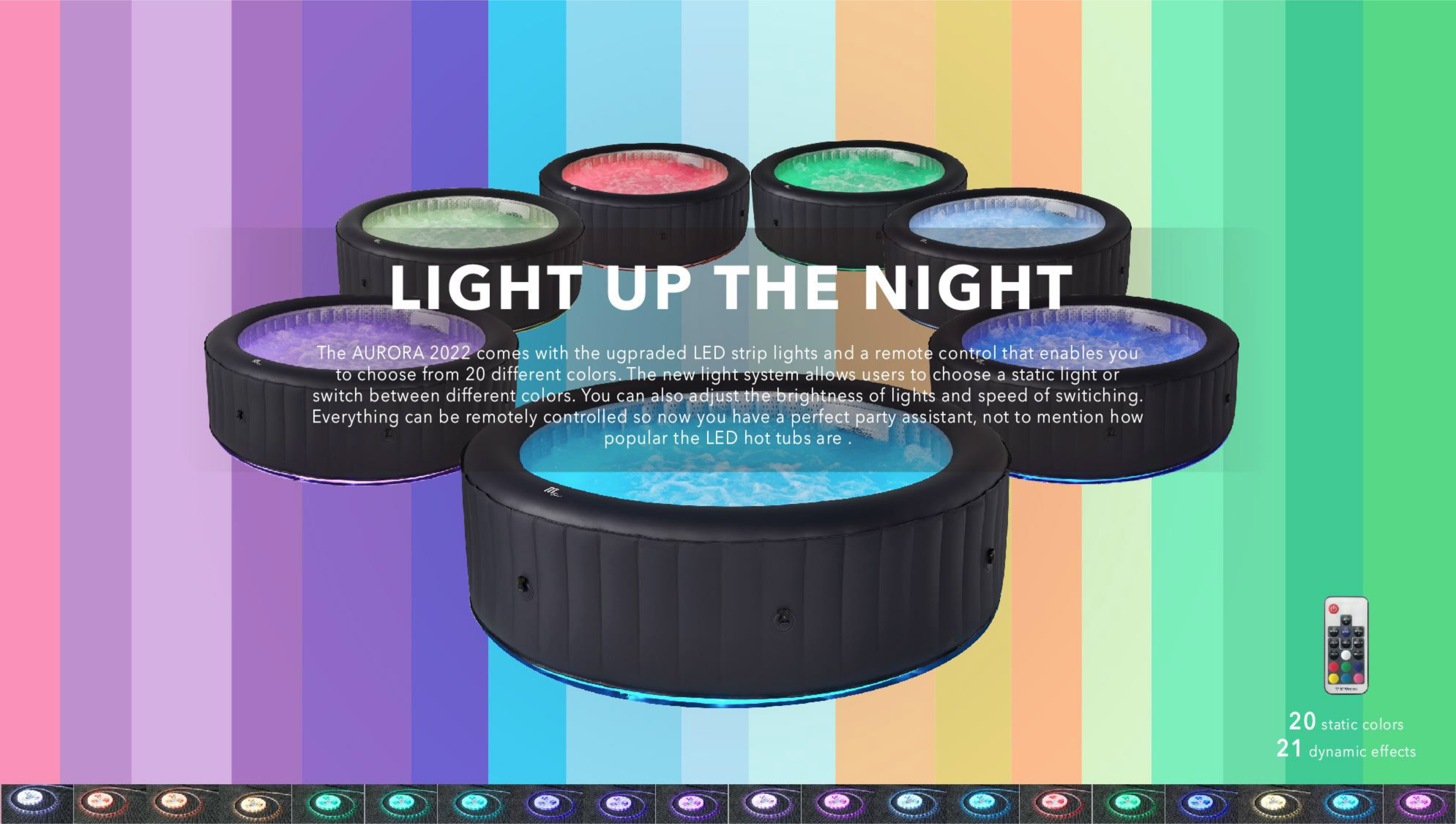 Nouveau: La lumière LED peut maintenant être contrôlée à distance et le spa peut alterner entre 20 couleurs statiques et 21 effets dynamiques ! De quoi changer l'ambiance de votre moment détente au gré de vos envies !
