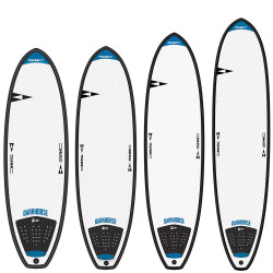 Proposée avec 5 boîtiers FCS pour surfer en thruster ou en quad, elle peut être équipée de dérives rigides pour encore plus de polyvalence et de performance.