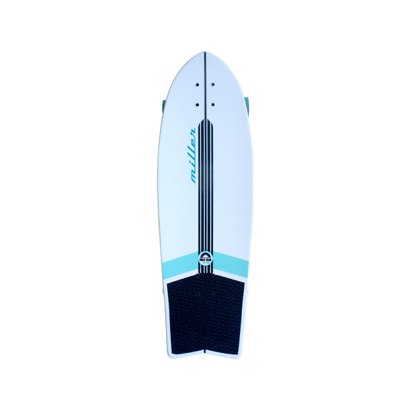 Le skate Miller Division Pablo Solar 32.5 est un modèle conçu par le rider Pablo Solar qui lui a donné son nom. C'est un surfskate idéalement conçu pour s'entraîner à booster son ride même hors de l'eau et développer ses acquis en surf sur un skate quand une session sur l'eau n'est pas possible.