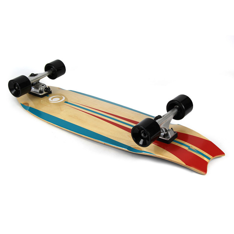 Comparé à un skate classique, ce surfskate possède un deck plus large afin d'offrir un maximum de stabilité vous permettant d’envoyer de courts virages puissants. Le deck est constitué de 7 couches d'érables pour un équilibre parfait entre robustesse, légèreté et flexibilité, il est aussi équipé d’un grip très adhérent pour un maintien parfait dans les carving.